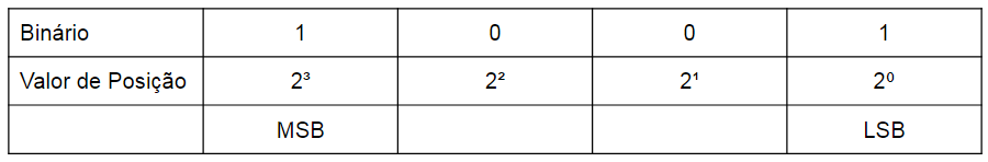 O valor da posição é indicado pelo expoente da base do sistema numérico, sendo que o mais significativo será a base elevado ao número de dígitos menos 1, por exemplo, um número de 4 bits terá o bit mais significativo com expoente 3 e o menos significativo com expoente 0, conforme o exemplo, onde MSB - most significant bit - bit mais significativo e LSB - least significant bit - bit menos significativo.