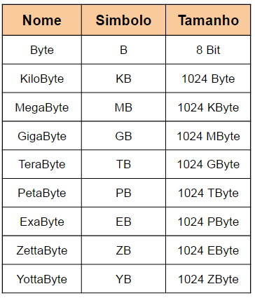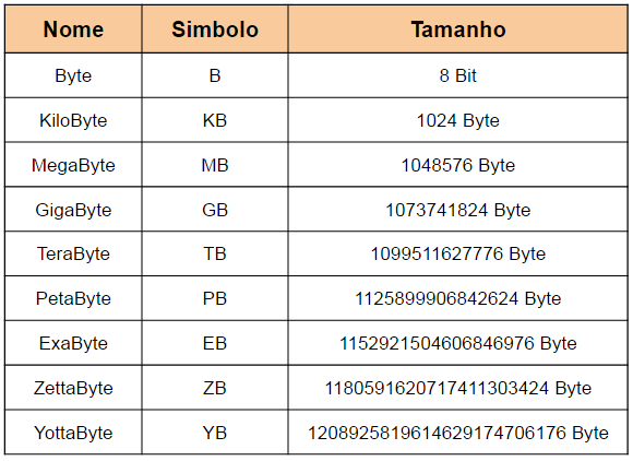 Lembrando que a base diferencia um sistema do outro, por exemplo, o número 1011 na base 2, é lido como um,zero,um,um, já na base 10 seria lido como mil e onze valores completamente diferentes. Em eletrônica digital e informática, costumamos agrupar os bits em conjuntos de 8, formando assim um Byte, podemos também agrupar os bytes, formando kilobits, de forma a expressar com mais facilidades os conjuntos, os múltiplos podem ser vistos nas tabelas abaixo: