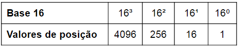 A tabela a seguir mostra a relação entre o sistema hexadecimal e o decimal, pode se observar que o sistema reinicia a cada 16 dígitos.