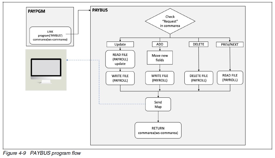If you recall, there are two programs PAYPGM and PAYBUS that make up the presentation and business logic of the application (Figure 4-1)