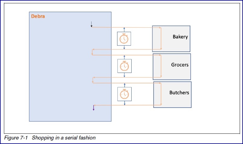 Firstly, the ability to split work into separate tasks that can be run independently – sending her boys off to shop.