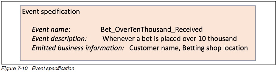 The Event Specification defines the business event and what application data will be passed to the consumer.
