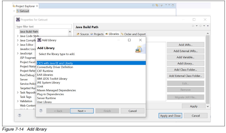 Create a Dynamic Web project using CICS Explorer and add the annotation class to the project classpath (Figure 7-14).