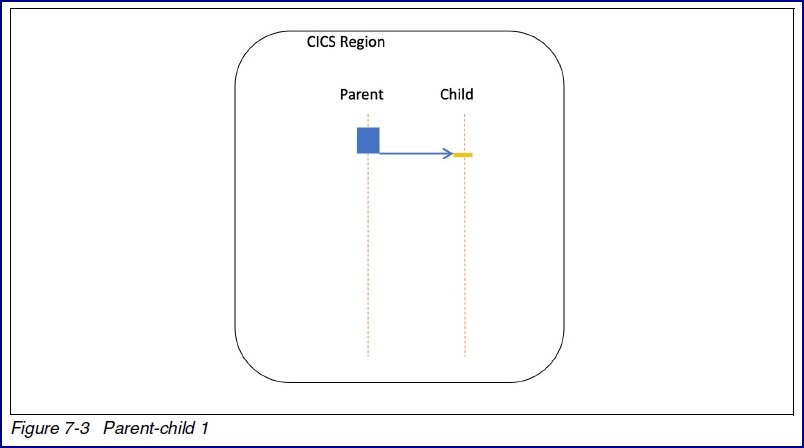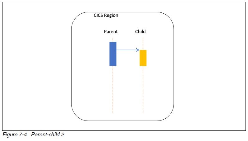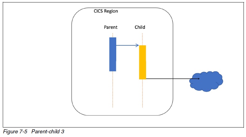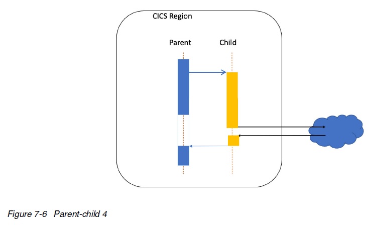 The child can issue the CICS API and can link to a remote region or invoke a web service (Figure 7-5).