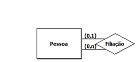 Observe que a cardinalidade do auto-relacionamento indica opcionalidade visto que a PESSOA pode nao ter pai conhecido ou ter somente um pai.