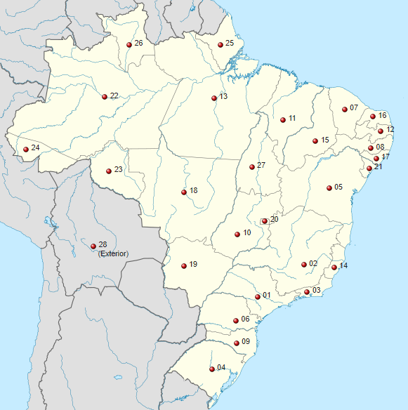 16 - RN 17 - AL 18 - MT 19 - MS 20 - DF
