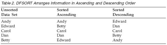 DFSORT é o sort de alto-desempenho da IBM. Com DFSORT, voce pode executar SORT, MERGE e COPY de datas sets. Você pode usar DFSORT para fazer tarefas simples como alfabetizar uma lista de nomes, ou você pode usar isto para ajudar tarefas complexas como fazer inventário ou correr um sistema de faturamento. DFSORT lhe dá dados versáteis que controlam capacidades ao registro, campo e a nível de bit.