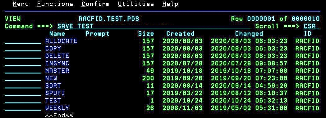 The command SAVE xx will save the entire member list with the statistics in a sequential data set whose name will be .xx.MEMBERS.