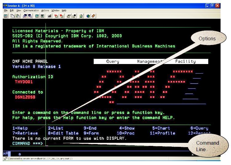Use “TSO QMF” command in the ISPF main menu; you will get the QMF Home Panel as follows: