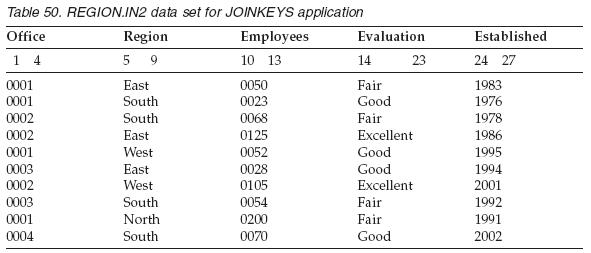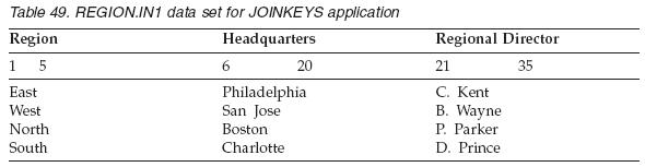 Suppose you have two input data sets, REGION.IN1 and REGION.IN2 as shown in Table 49 and Table 50. REGION.IN1 has RECFM=FB and LRECL=35 and REGION.IN2 has