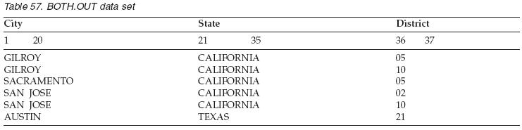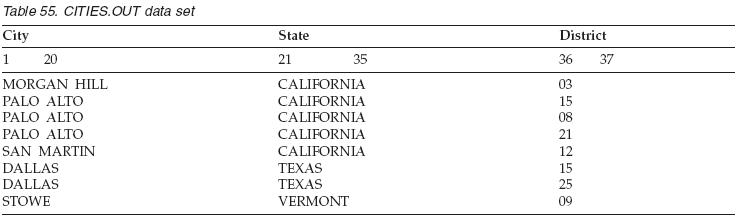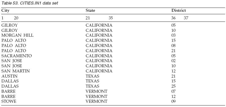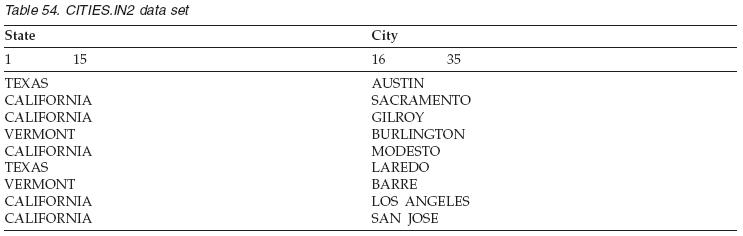 Suppose you have two input data sets, CITIES.IN1 and CITIES.IN2 as shown in Table 53 and Table 54.